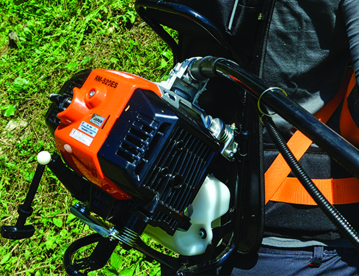 The ECHO RM-520ES is an extremely powerful and light weight backpack brushcutter that has been designed specifically for heavy duty commercial work. The backpack design supports the engine’s weight and allows for a robust anti vibration system. This design is ideal for use on varying terrain such as banks, hills, steep slopes and other difficult-to-reach areas. The RM-520ES offers more maneuverability, power and comfort and less fatigue.