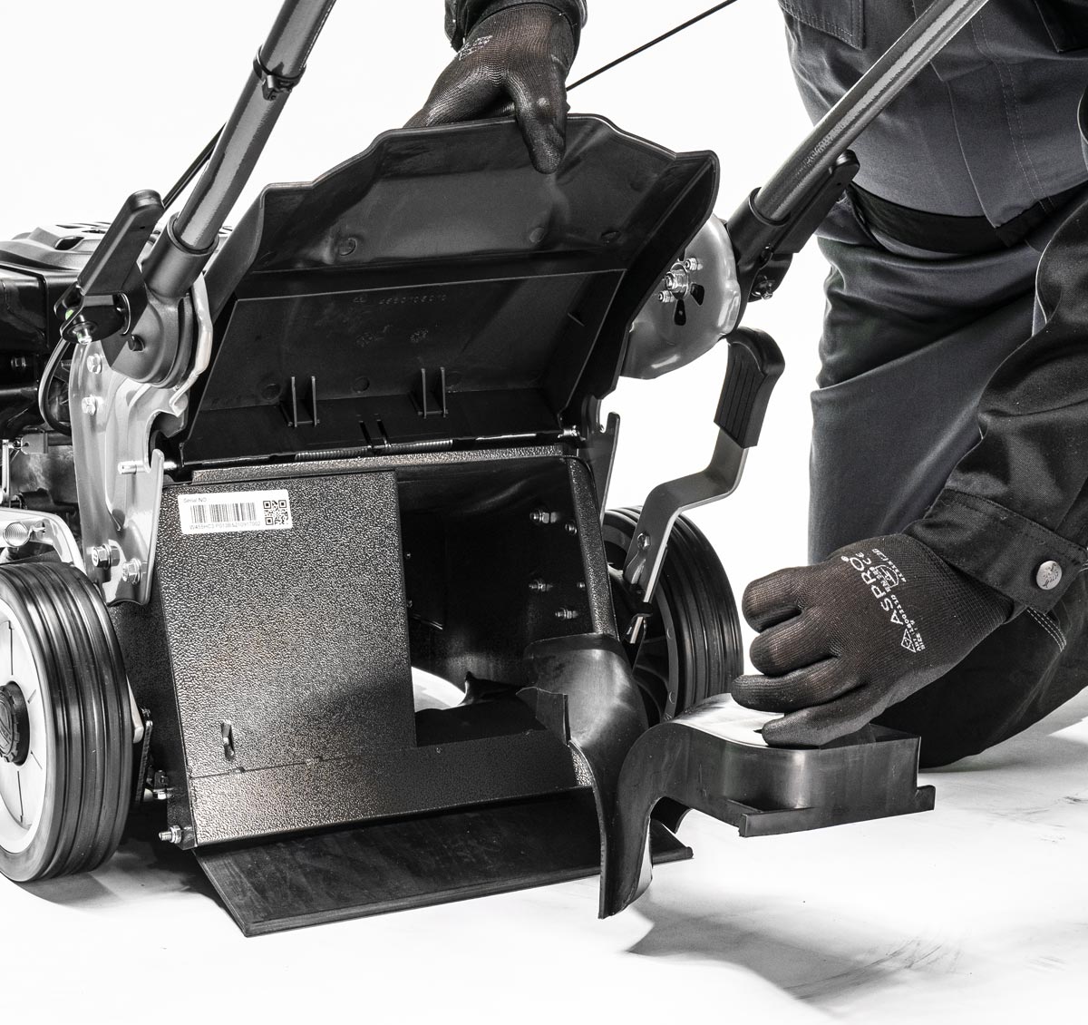 As a commercial lawnmower transportation is key, which is why we developed our quick release folding handles to allow for easy lifting when moving between locations, and easy access to the underside of the deck for cleaning and general maintenance.